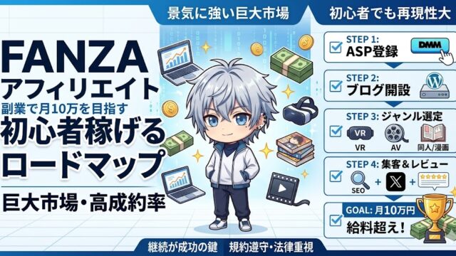 FANZAアフィリエイトは初心者でも稼げる?副業で月10万を目指す完全ロードマップ
